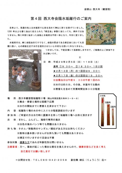 会陽当日は1,000円 (19:00~21:15)※修正会は20:50~です。